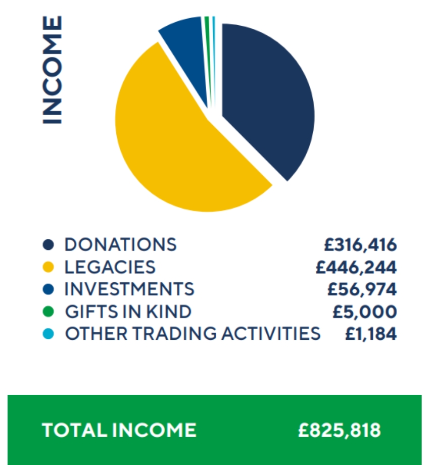 Our 5-year aggregate is 17.4p:£1. Legacy gifts still account for a significant part of our income. The Trustees are committed to ensuring that the charity can operate on a more sustainable footing.